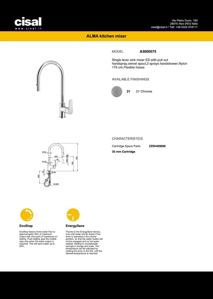Single lever sink mixer EASLwMitAh kpuitlcl houetnhmanidxseprray KITCHEN_A3000575
