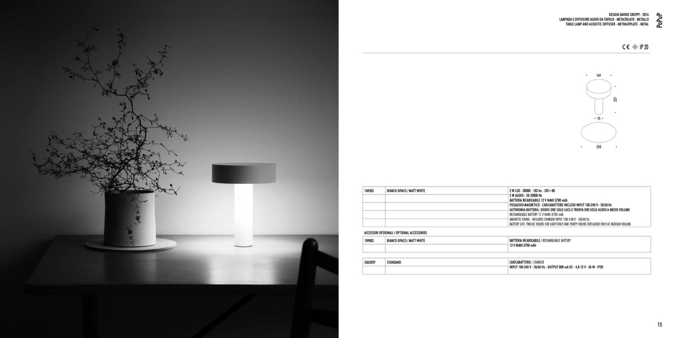 AUTONOMIA BATTERIA: DODICI ORE SOLO LUCE E TRENTA ORE SOLO AUDIO A MEDIO VOLUME