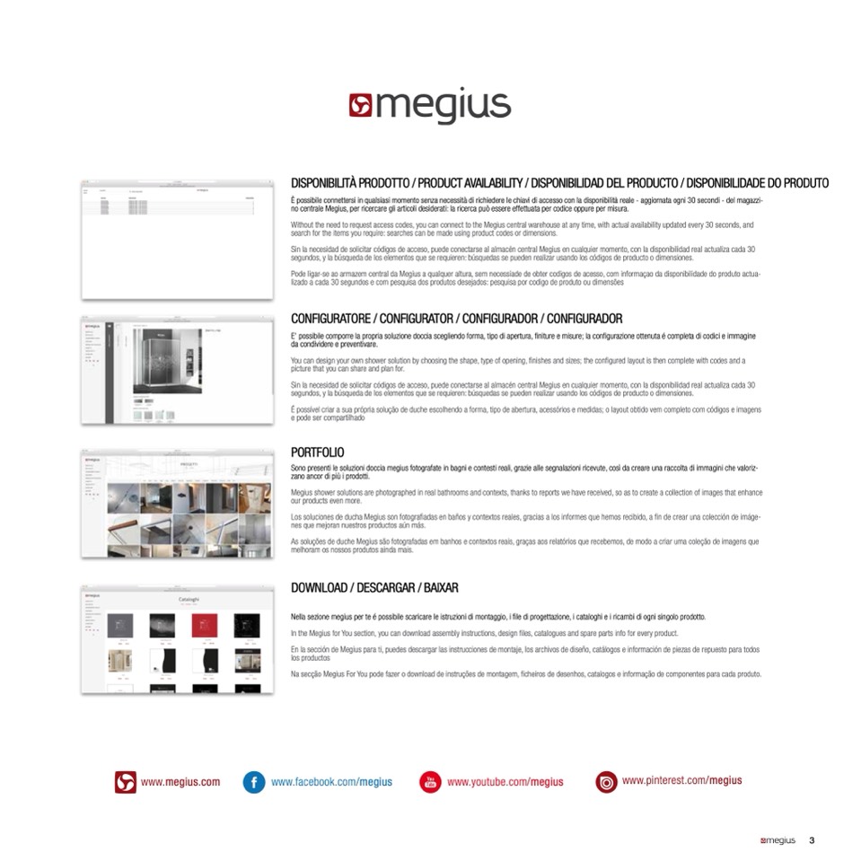 As soluções de duche Megius são fotografadas em banhos e contextos reais, graças aos relatórios que recebemos, de modo a criar uma coleção de imagens que