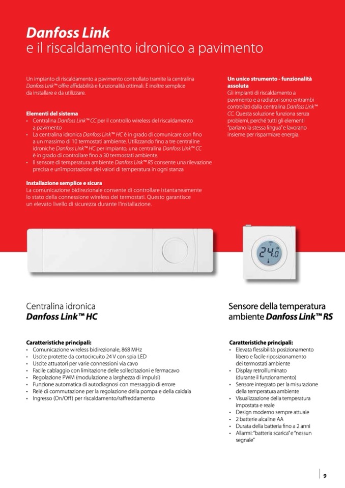• Centralina Danfoss LinkTM CC per il controllo wireless del riscaldamento