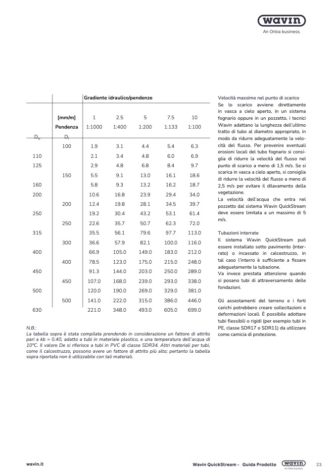 10°C. Il valore De si riferisce a tubi in PVC di classe SDR34. Altri materiali per tubi,