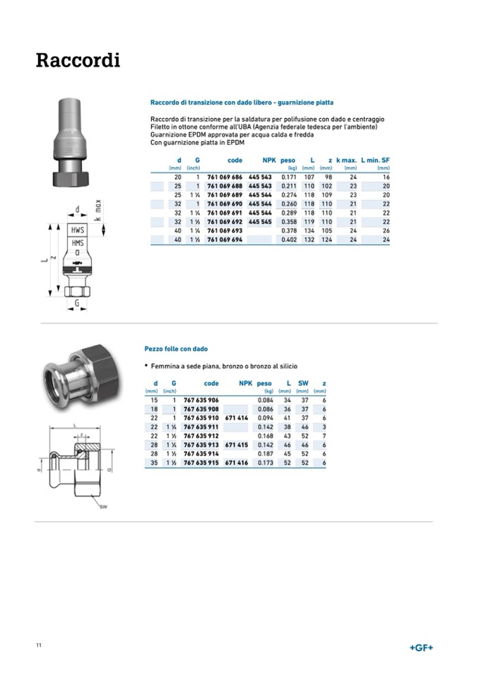 Raccordo di transizione per la saldatura per polifusione con dado e centraggio