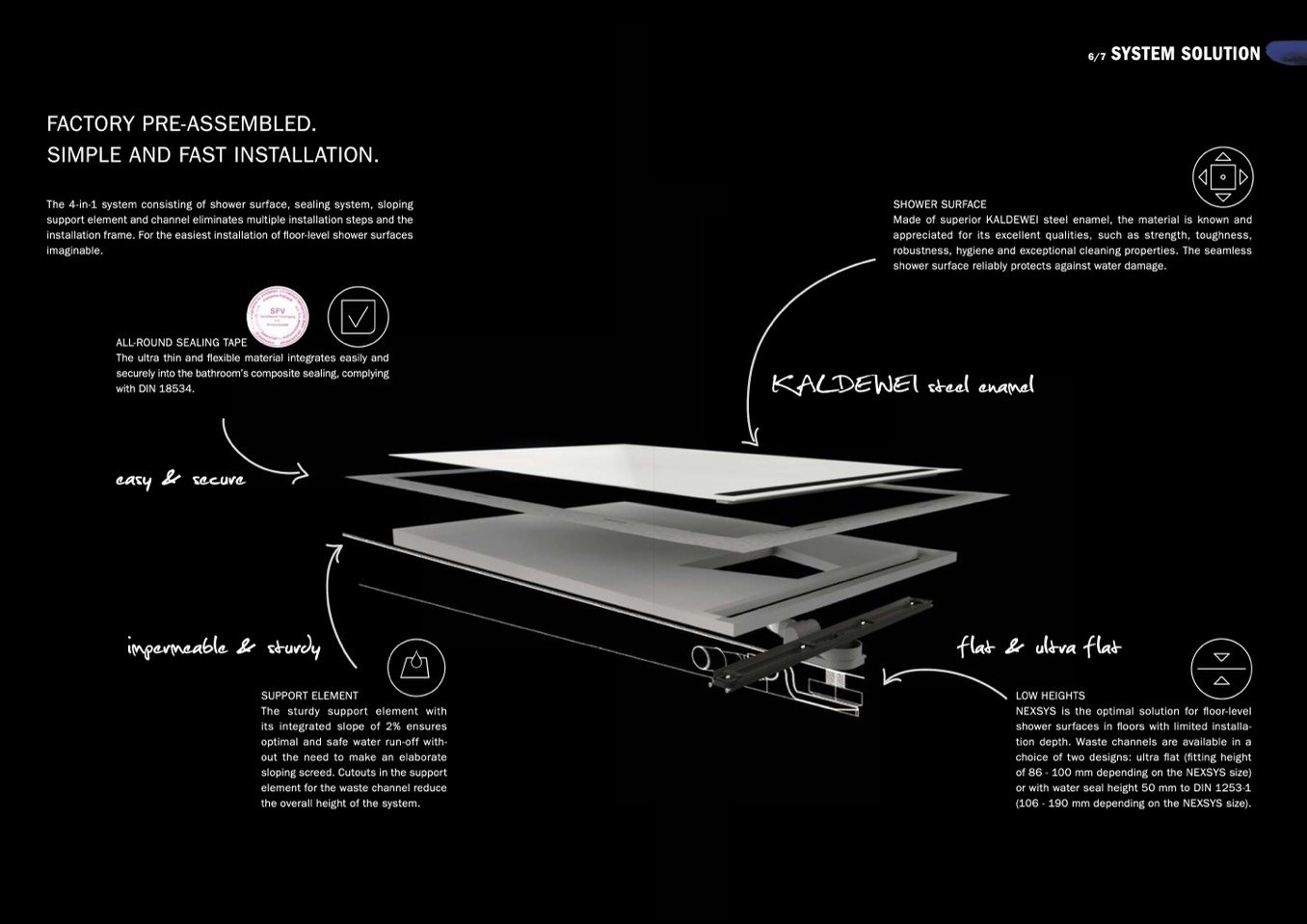The 4-in-1 system consisting of shower surface, sealing system, sloping