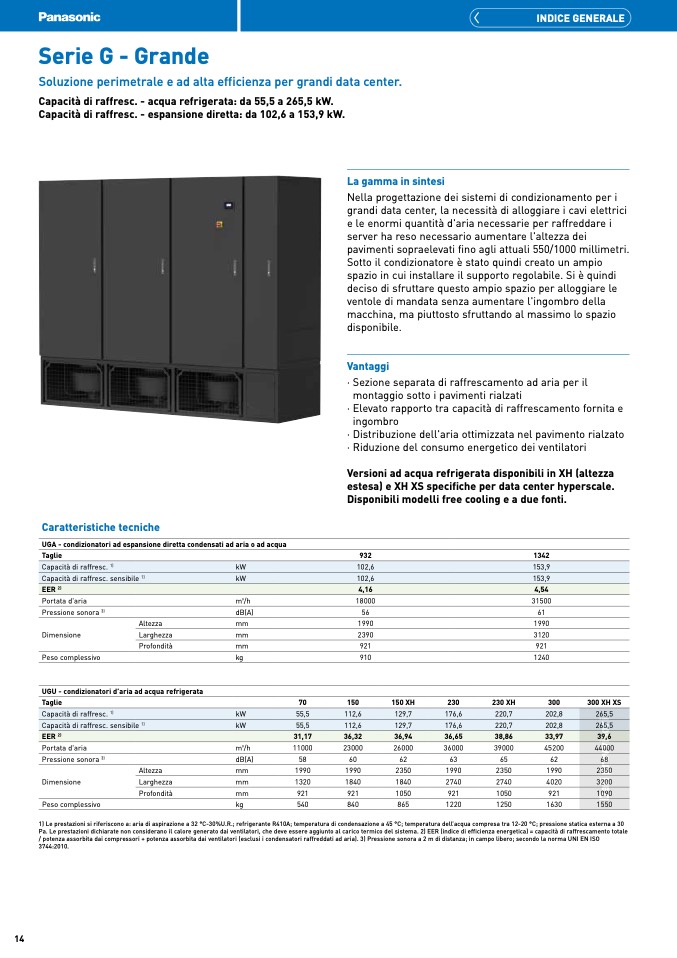 1) Le prestazioni si riferiscono a: aria di aspirazione a 32 °C-30%U.R.; refrigerante R410A; temperatura di condensazione a 45 °C; temperatura dell’acqua compresa tra 12-20 °C; pressione statica esterna a 30