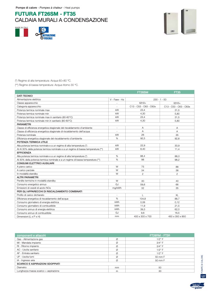 (**) Regime di bassa temperatura: Acqua ritorno 30 °C.