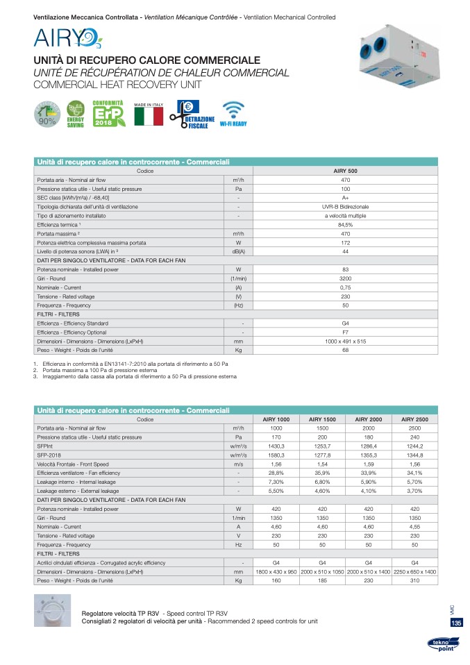 Codice AIRY 1000 AIRY 1500 AIRY 2000 AIRY 2500
