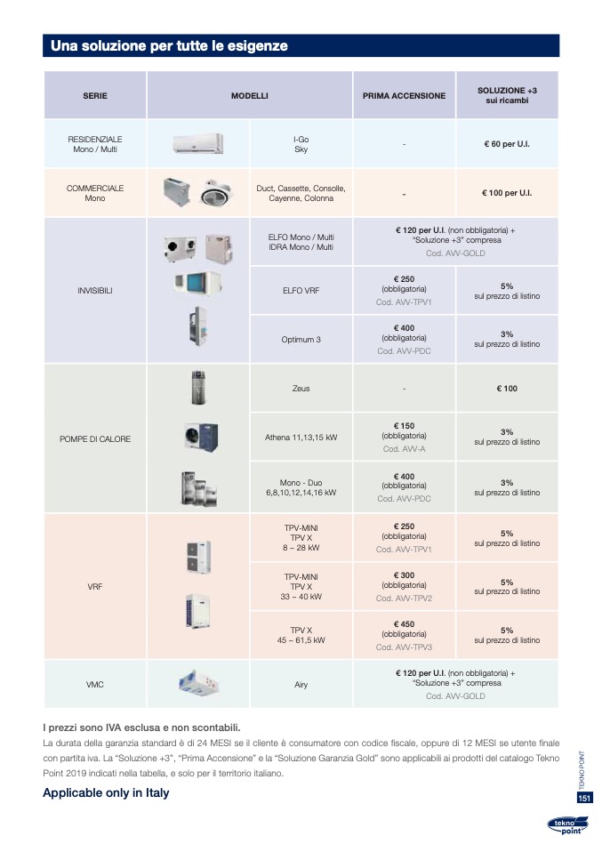 con partita iva. La “Soluzione +3”, “Prima Accensione” e la “Soluzione Garanzia Gold” sono applicabili ai prodotti del catalogo Tekno