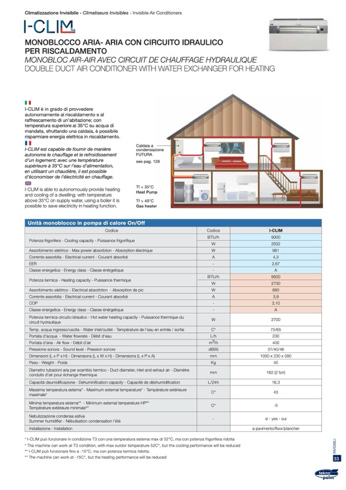 * I-CLIM può funzionare in condizione T3 con una temperatura esterna max di 52°C, ma con potenza frigorifera ridotta
