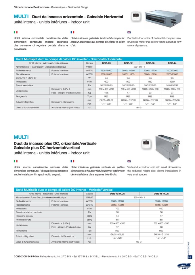 Unità Interna - Indoor unit - Unité intérieure Codice DBIS-12 PLUS DBIS-18 PLUS