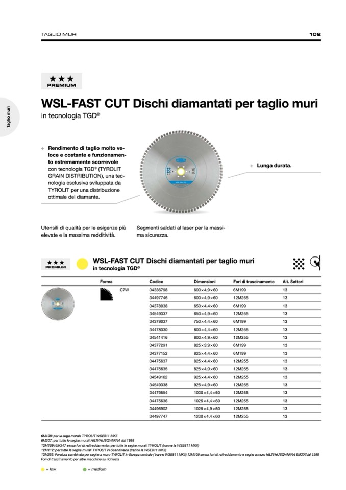 12M255: Foratura combinata per seghe a muro TYROLIT in Europa centrale ( tranne WSE811 MKII) 12M109 senza fori di raffreddamento e seghe a muro HILTI/HUSQVARNA 6M207dal 1998