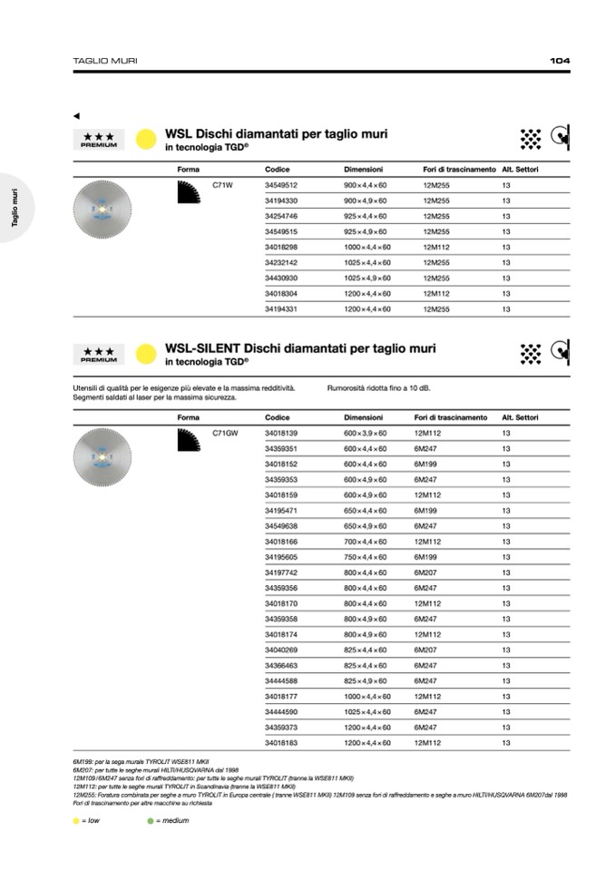 12M255: Foratura combinata per seghe a muro TYROLIT in Europa centrale ( tranne WSE811 MKII) 12M109 senza fori di raffreddamento e seghe a muro HILTI/HUSQVARNA 6M207dal 1998