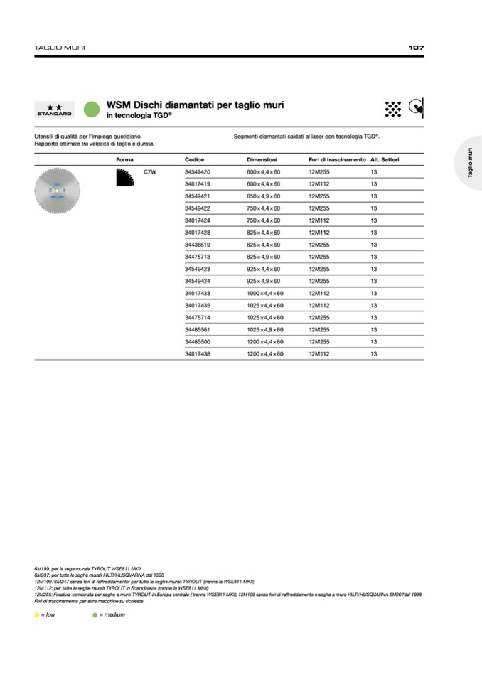 12M255: Foratura combinata per seghe a muro TYROLIT in Europa centrale ( tranne WSE811 MKII) 12M109 senza fori di raffreddamento e seghe a muro HILTI/HUSQVARNA 6M207dal 1998