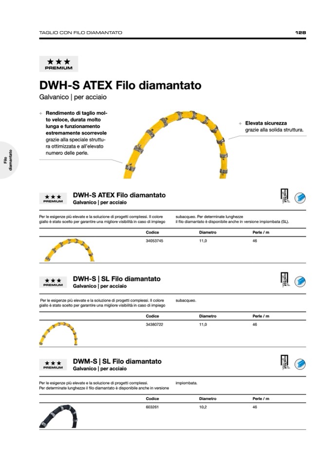 Per determinate lunghezze il filo diamantato è disponibile anche in versione