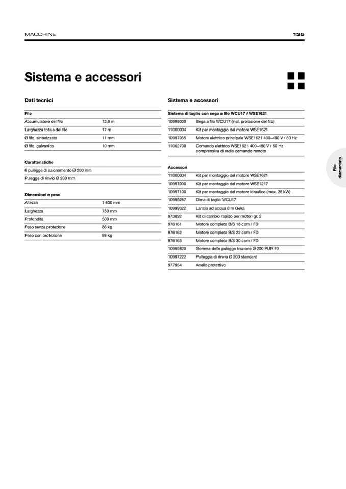 Sistema di taglio con sega a filo WCU17 / WSE1621