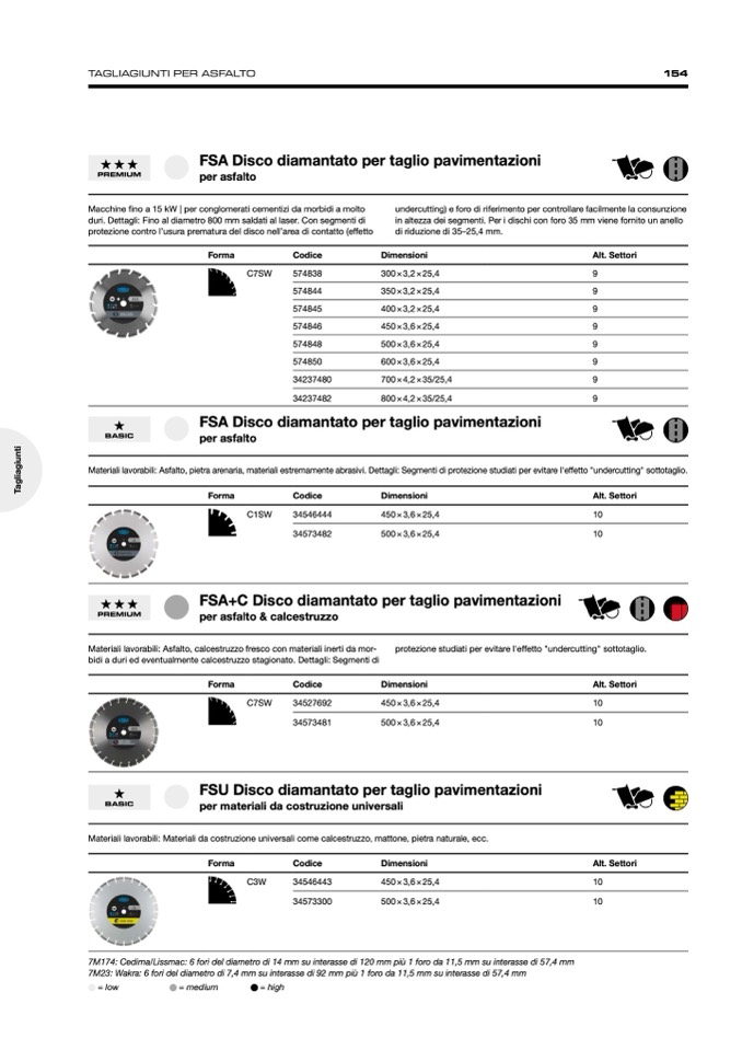 Materiali lavorabili: Asfalto, pietra arenaria, materiali estremamente abrasivi. Dettagli: Segmenti di protezione studiati per evitare l'effetto "undercutting" sottotaglio.