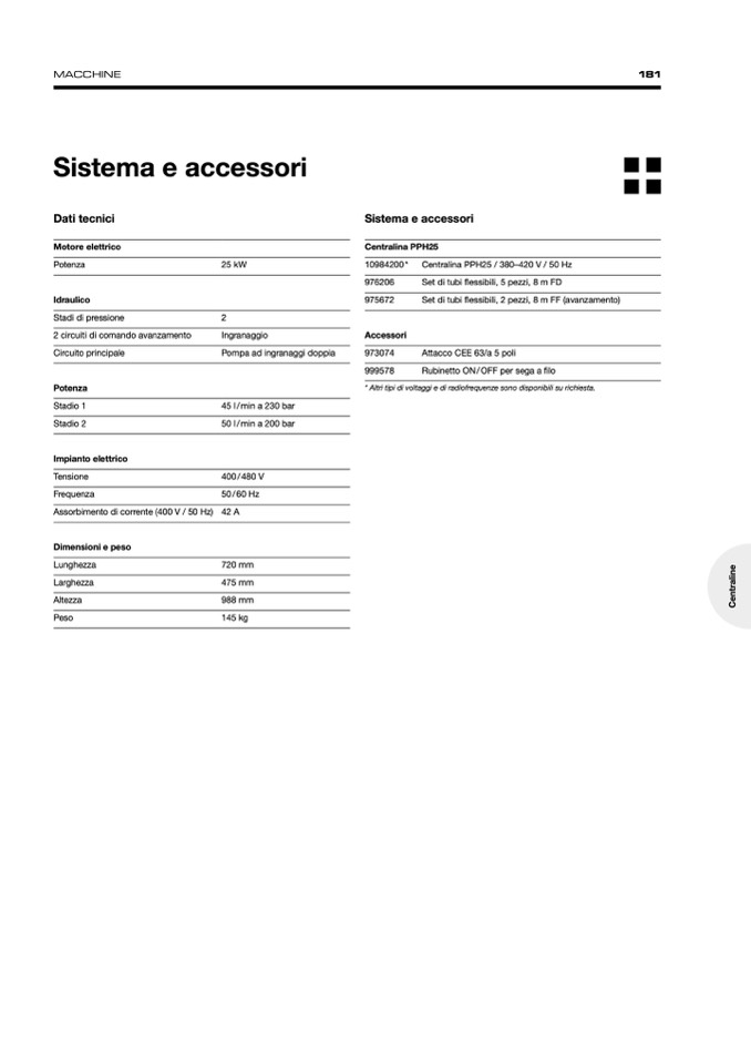 * Altri tipi di voltaggi e di radiofrequenze sono disponibili su richiesta.