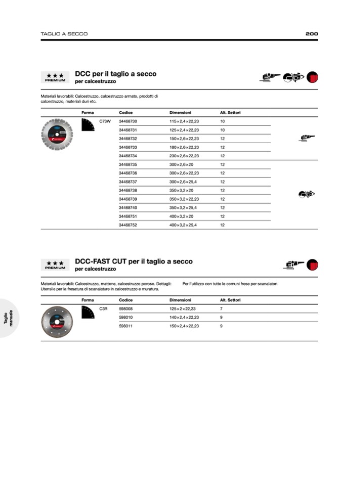 Materiali lavorabili: Calcestruzzo, calcestruzzo armato, prodotti di