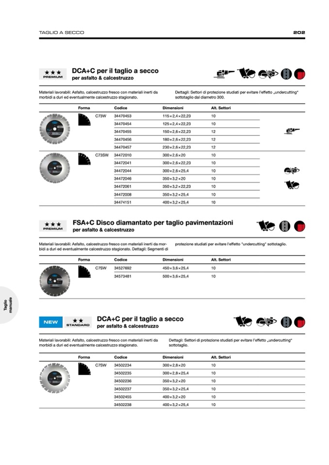 Materiali lavorabili: Asfalto, calcestruzzo fresco con materiali inerti da