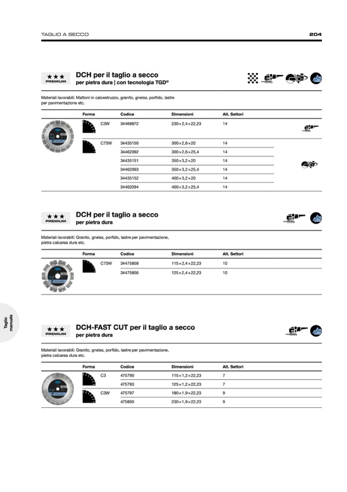 Materiali lavorabili: Mattoni in calcestruzzo, granito, gneiss, porfido, lastre