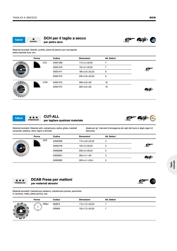 Materiali lavorabili: Materiali edili, calcestruzzo, pietra, ghisa, materiali