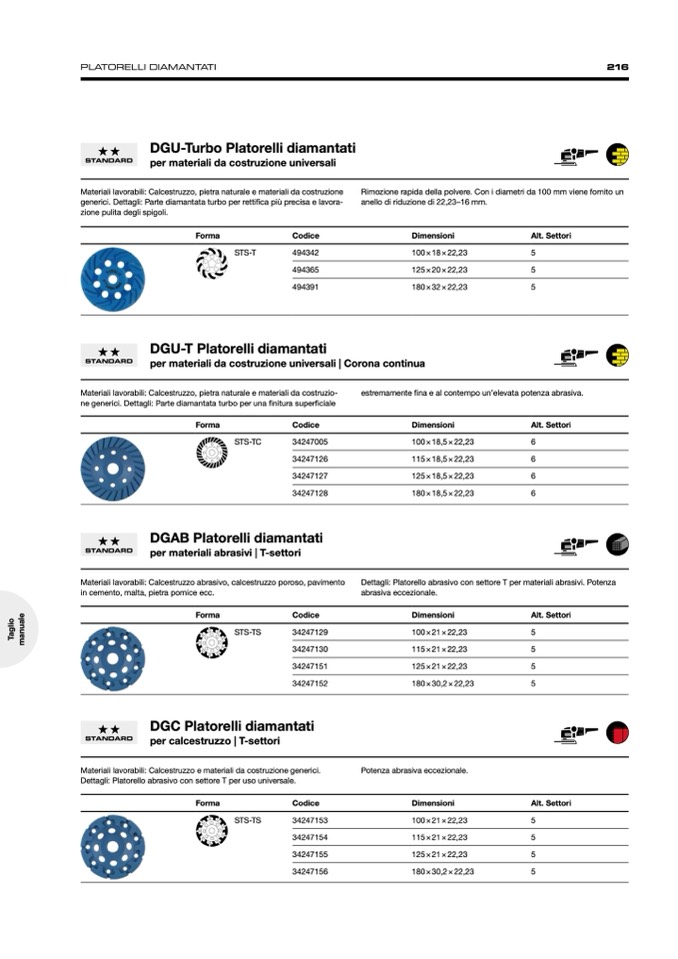 per materiali abrasivi | T-settori