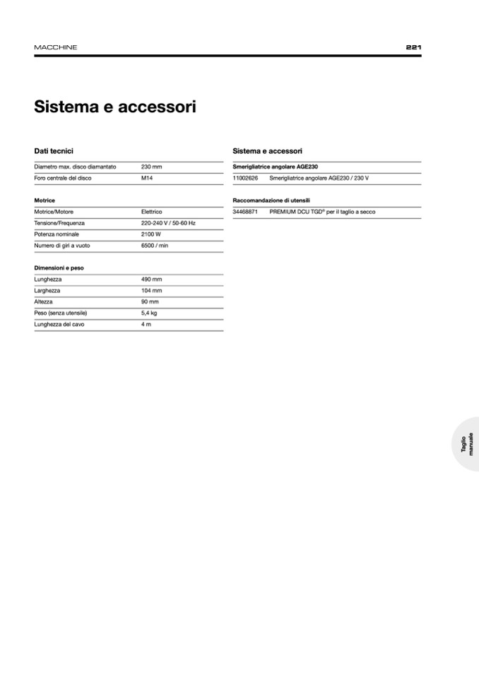 Smerigliatrice angolare AGE230 / 230 V