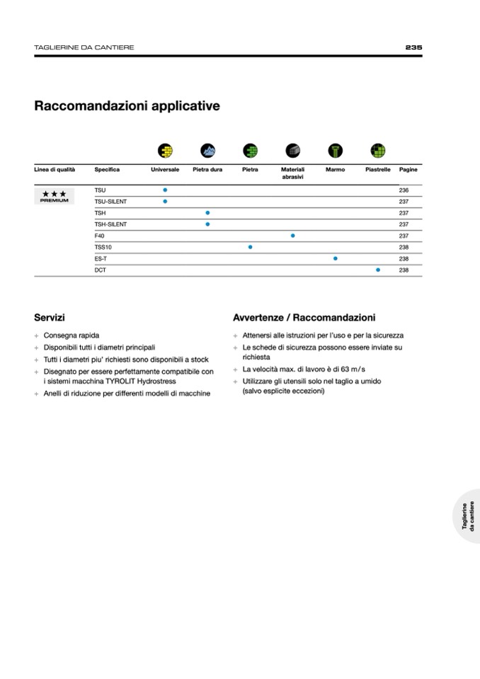 + Utilizzare gli utensili solo nel taglio a umido