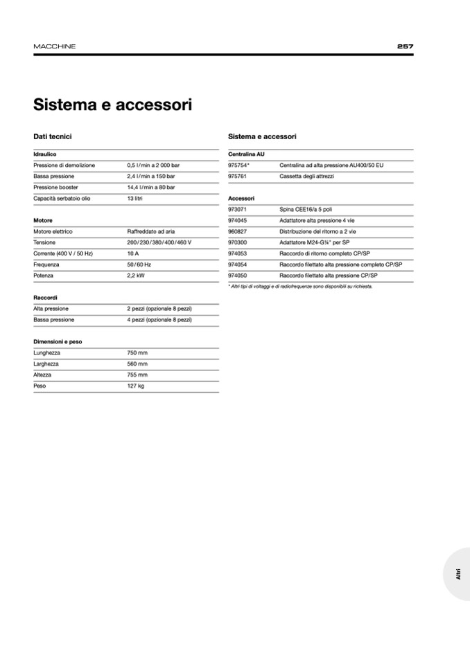 * Altri tipi di voltaggi e di radiofrequenze sono disponibili su richiesta.