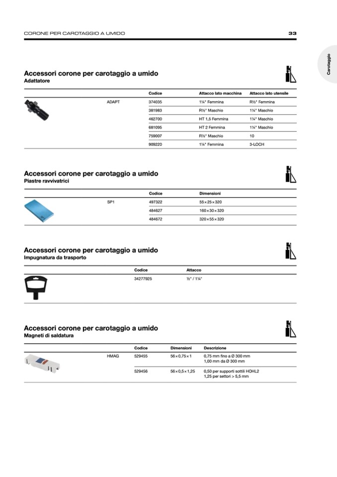 CORONE PER CAROTAGGIO A UMIDO