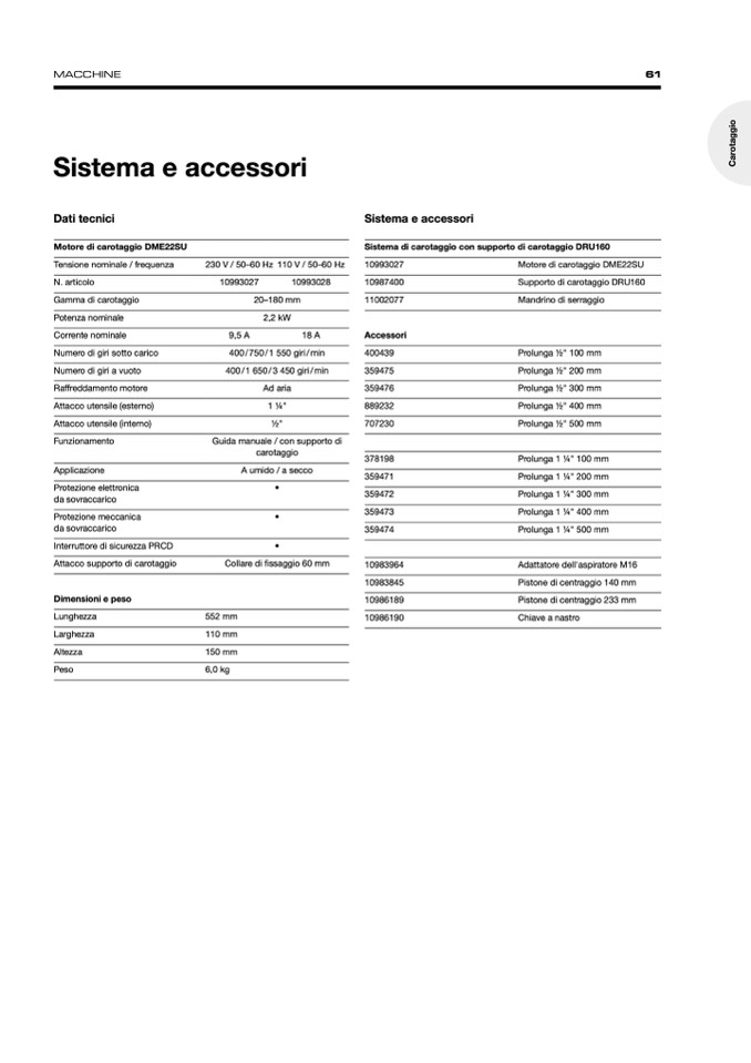 Motore di carotaggio DME22SU