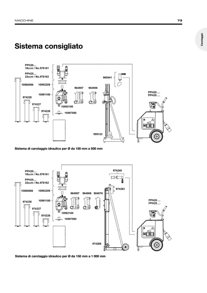Sistema di carotaggio idraulico per Ø da 150 mm a 500 mm