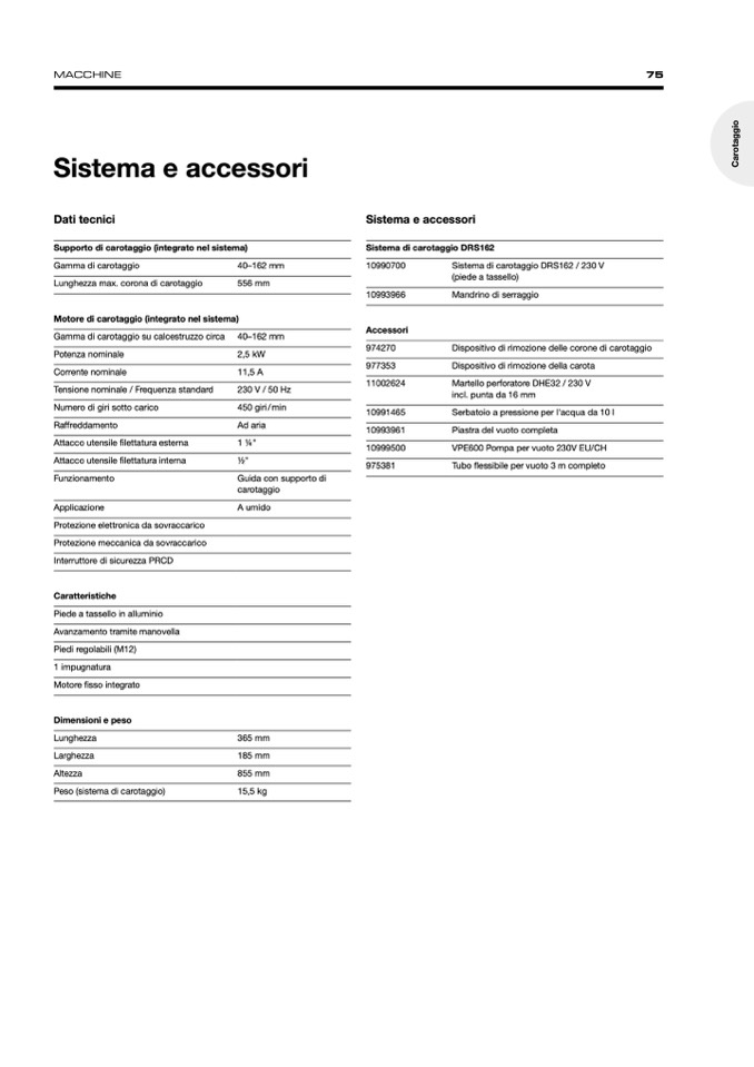 Sistema di carotaggio DRS162 / 230 V