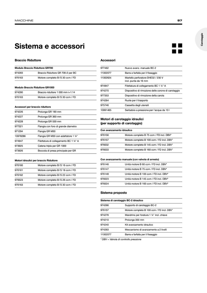 * DBV = Valvola di controllo pressione