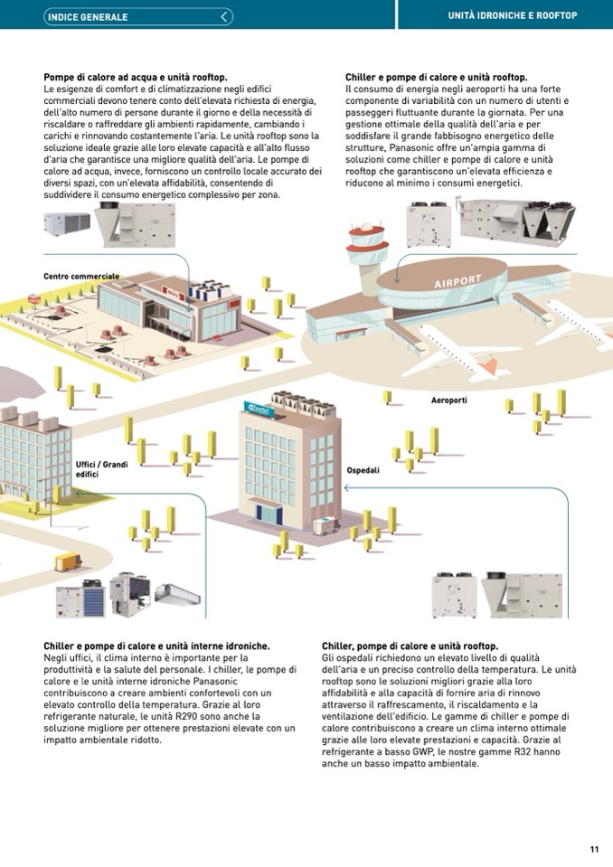 ventilazione dell'edificio. Le gamme di chiller e pompe di