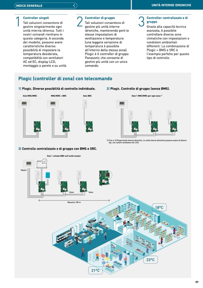 1) Fino a 15 Plogic/unità interne idroniche. Le unità interne idroniche possono essere di diversi