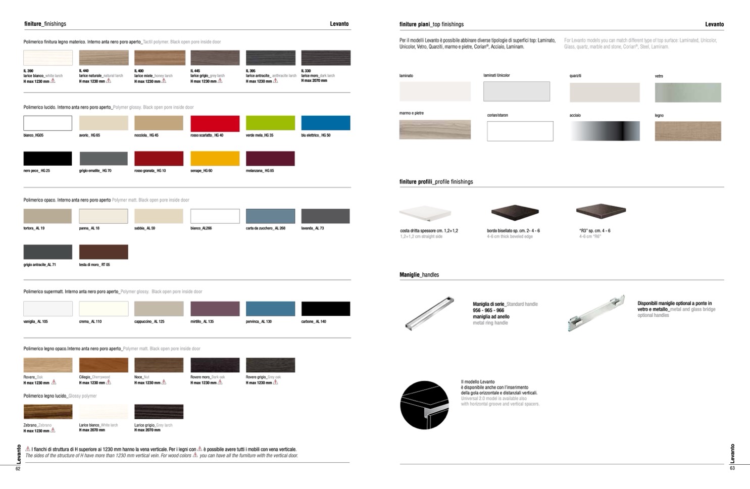 For Levanto models you can match different type of top surface: Laminated, Unicolor,