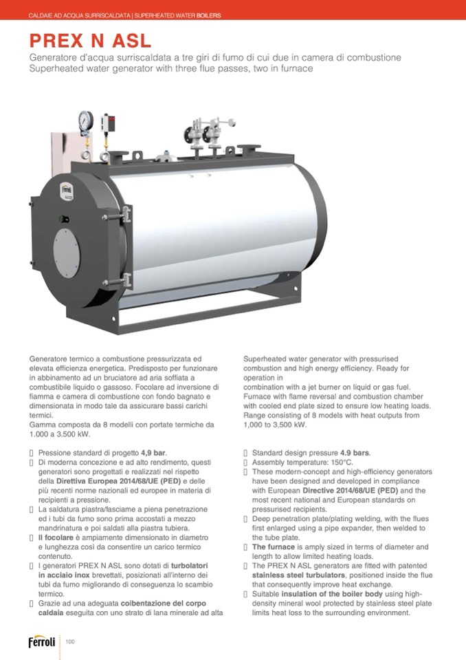 n I generatori PREX N ASL sono dotati di turbolatori