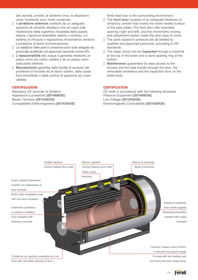 portellone al focolare ed al fascio tubiero, dalla cassa