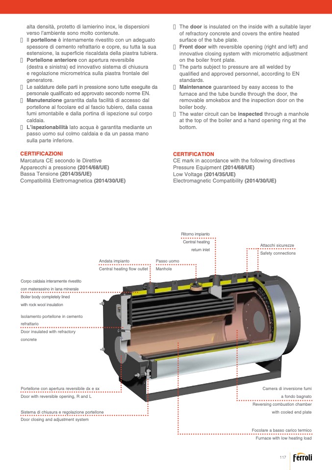 portellone al focolare ed al fascio tubiero, dalla cassa