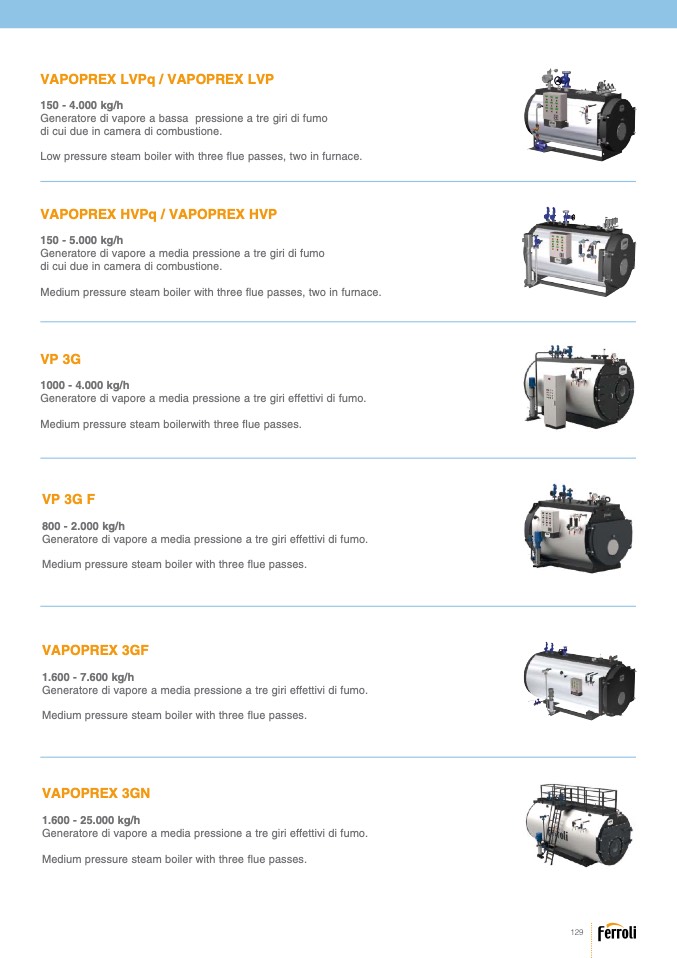 Generatore di vapore a media pressione a tre giri effettivi di fumo.