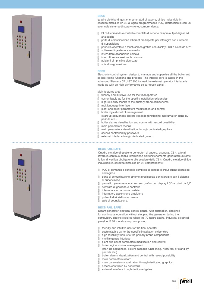 Quadro elettrico di gestione generatori di vapore, esonerati 72 h, atto al