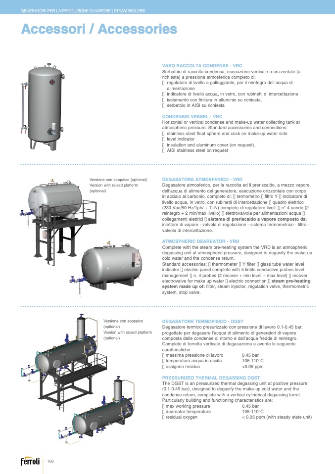 progettato per degasare l’acqua di alimento di generatori di vapore