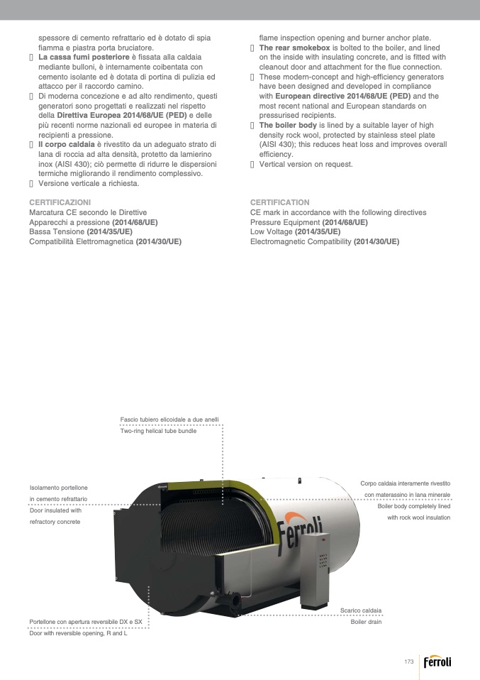 n Il corpo caldaia è rivestito da un adeguato strato di