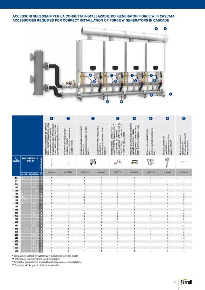 ACCESSORIES REQUIRED FOR CORRECT INSTALLATION OF FORCE W GENERATORS IN CASCADE