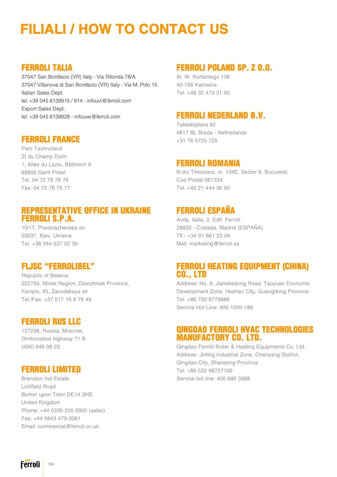 tel. +39 045 6139915 / 914 - infouvi@ferroli.com