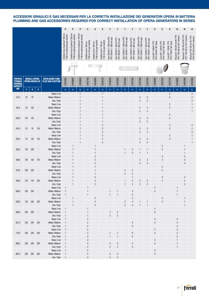 ACCESSORI IDRAULICI E GAS NECESSARI PER LA CORRETTA INSTALLAZIONE DEI GENERATORI OPERA IN BATTERIA