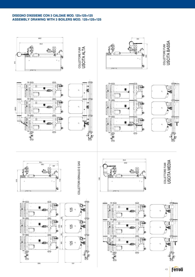 ASSEMBLY DRAWING WITH 3 BOILERS MOD. 125+125+125