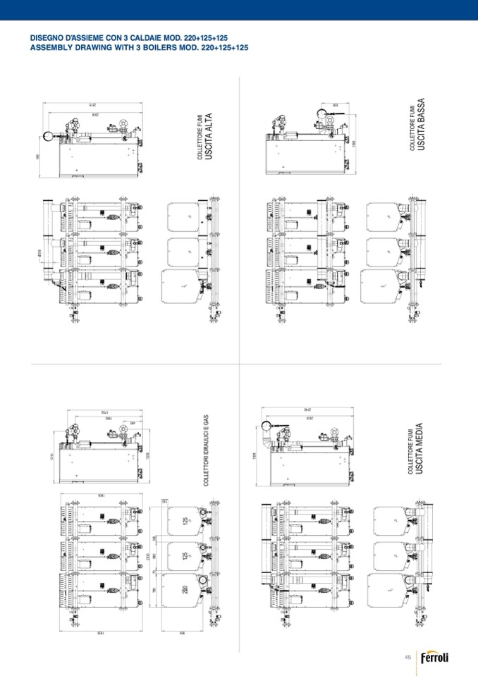 ASSEMBLY DRAWING WITH 3 BOILERS MOD. 220+125+125