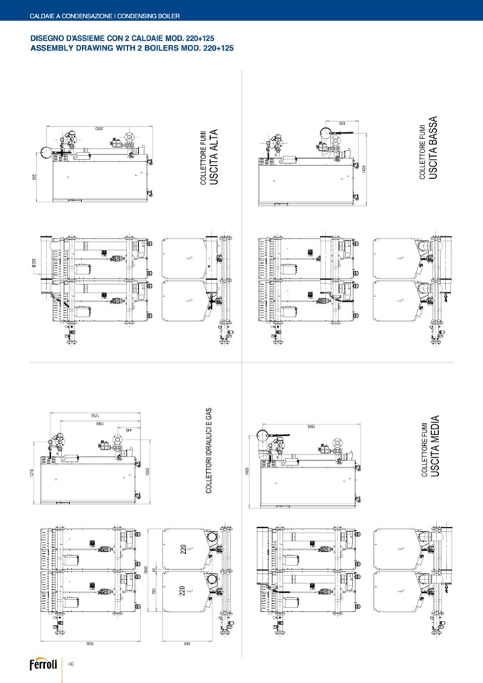 ASSEMBLY DRAWING WITH 2 BOILERS MOD. 220+125