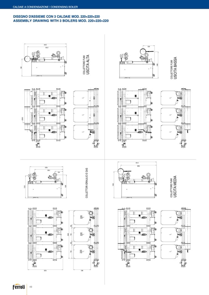 ASSEMBLY DRAWING WITH 3 BOILERS MOD. 220+220+220